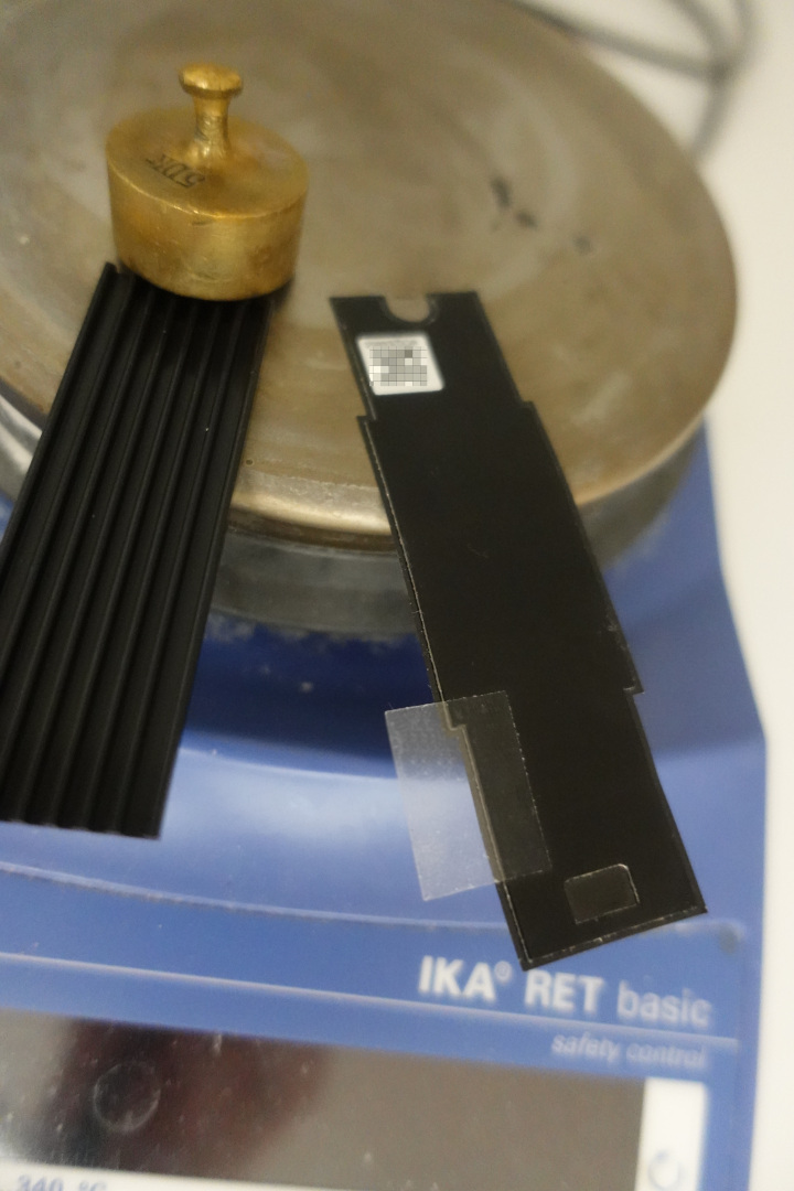 What we will do here, is heat one of these stickers and a thin aluminium heatsink side by side up on one end, and using an IR camera and my fingers measure how well it conducts heat.